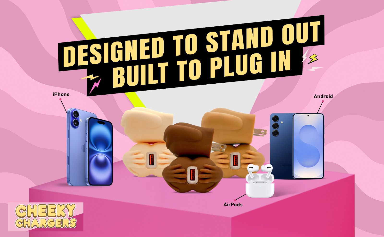 Cheeky Chargers - our 20W USB power adapter offers fast, efficient charging at home, in the office, or on the go with a soft-touch silicone sleeve in a variety of options.